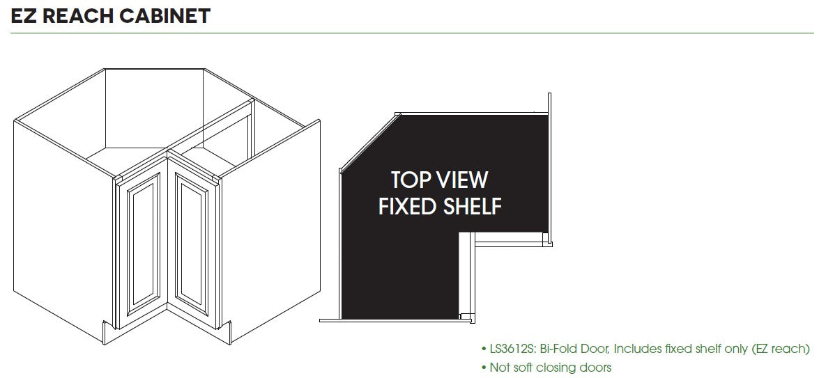 AG-LS3612S Greystone Shaker Corner Base Lazy Susan Cabinet w/ Fixed Shelf