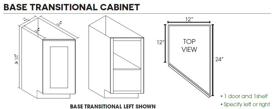 Transitional Right Hand Base - 12"W x 24"D-12"D x 34-1/2"H - 1 Door