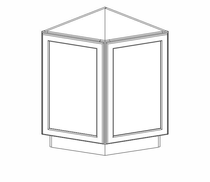 24" Angle Base Cabinet - 24"W x 34-1/2"W x 24"D - 2 Doors, 1 Shelf. Door size 17-7/8W X 29-1/4”H. Both doors are functional.