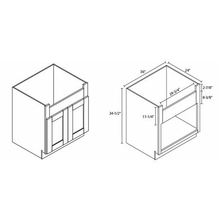 Farm Sink Base - 36"W x 24"D x 34-1/2"H - 2 Doors