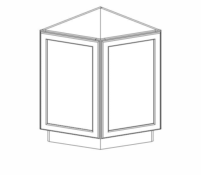 24" Angle Base Cabinet - 24"W x 34-1/2"W x 24"D - 2 Doors, 1 Shelf. Door size 17-7/8W X 29-1/4”H. Both doors are functional.