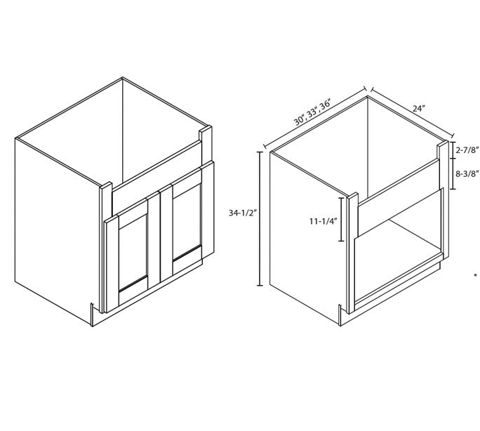Farm Sink Base - 30"W x 24"D x 34-1/2"H - 2 Doors